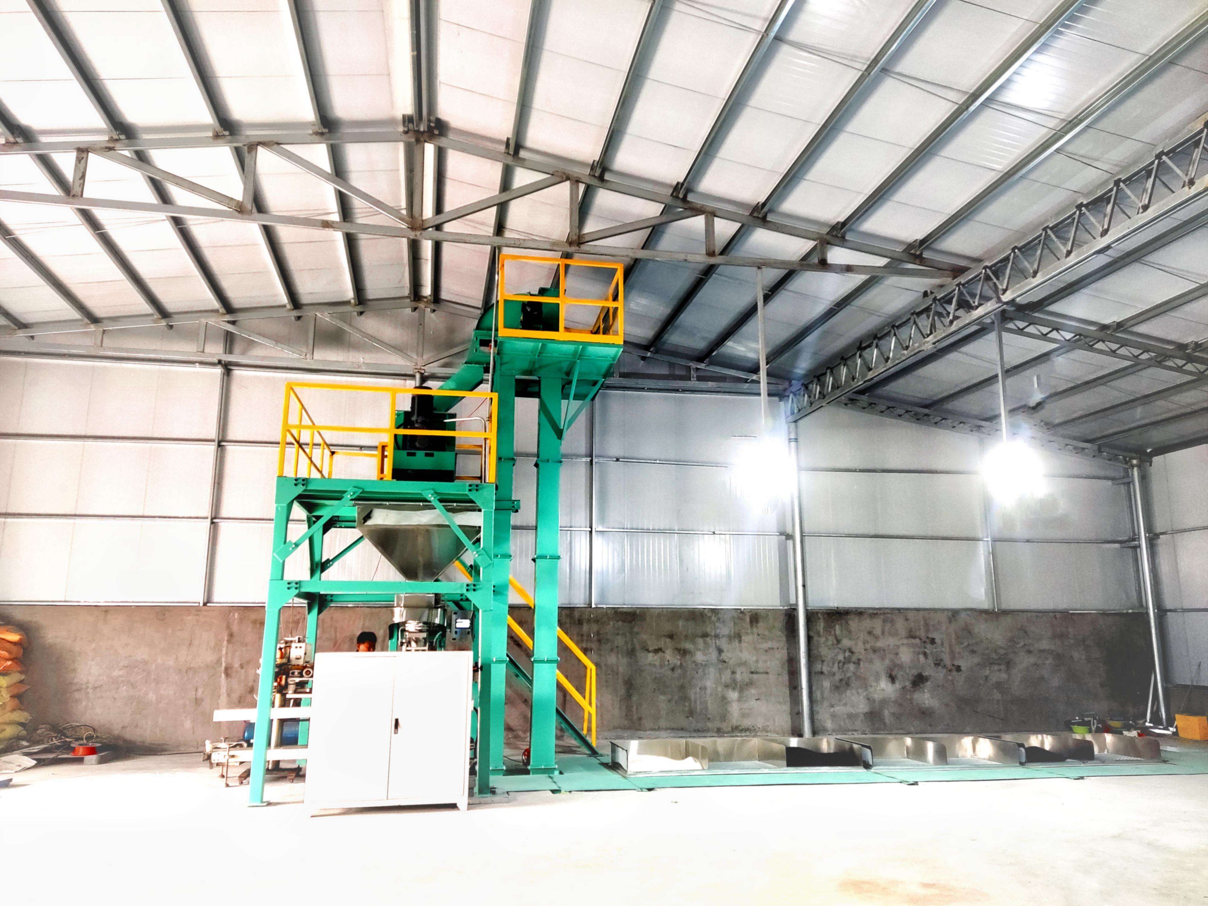 After the raw materials pass through the automatic metering system, the elevator lifts them and transports them to the mixer.