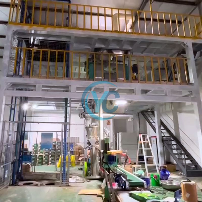 lifting machine material - manual point package, dust-free feeding station feeding - raw material crushing - efficient mixer -