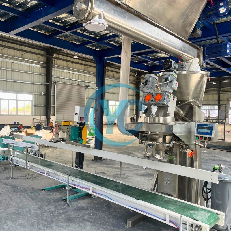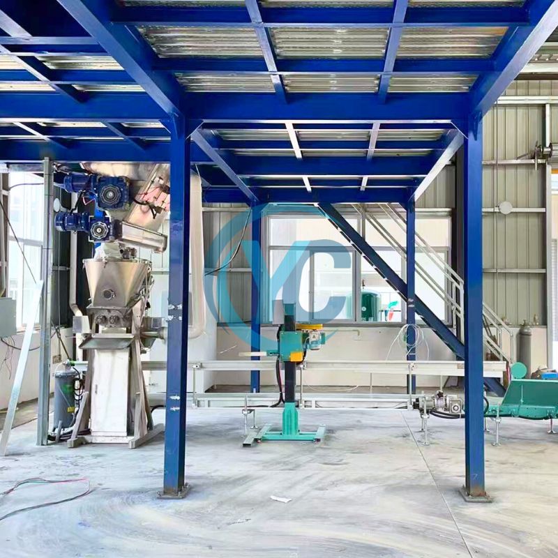 lifting machine material -manual point package, dust-free feeding station feeding -raw material crushing -efficient mixer -finished product silo -powder packing scale -sealing and conveying -packing and packing (optional) -palletizing (optional)