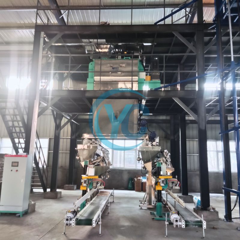 This fertilizer mixing equipment is ideal for small powder water soluble fertilizer plants with a capacity of 1–3 tons per hour.
