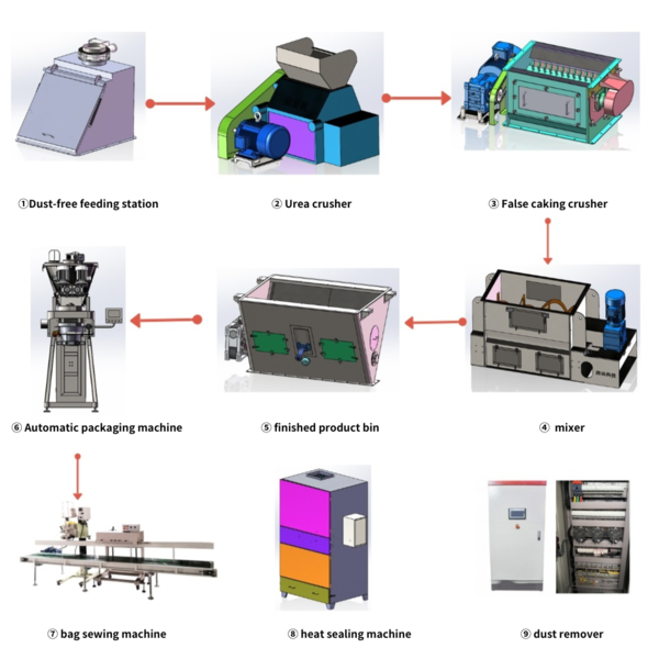 lifting machine material - manual point package, dust-free feeding station feeding - raw material crushing - efficient mixer -